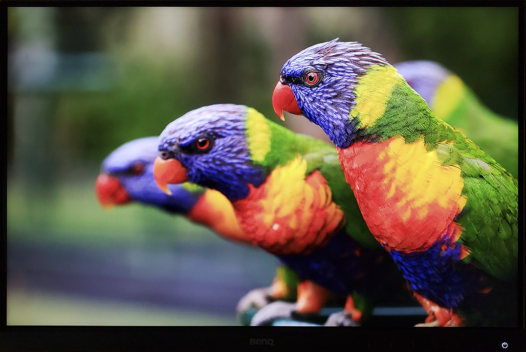 Just take a look at each side-by-side comparison of the same “Colorful Birds theme” 8-bit images on the 28″ ASUS VN289 versus the 24″ BenQ SW240. Which ones do you prefer?