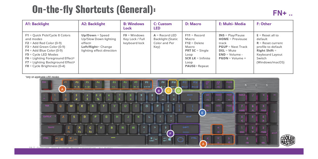 Finally, the SK653 has a plethora of on-the-fly controls and software: You can customize macros, profiles, and lighting schemes easily. In order to save time from discussing or listing these controls, I’ve included two diagrams that cover the on-the-fly shortcuts in detail. Visual is the better approach here.