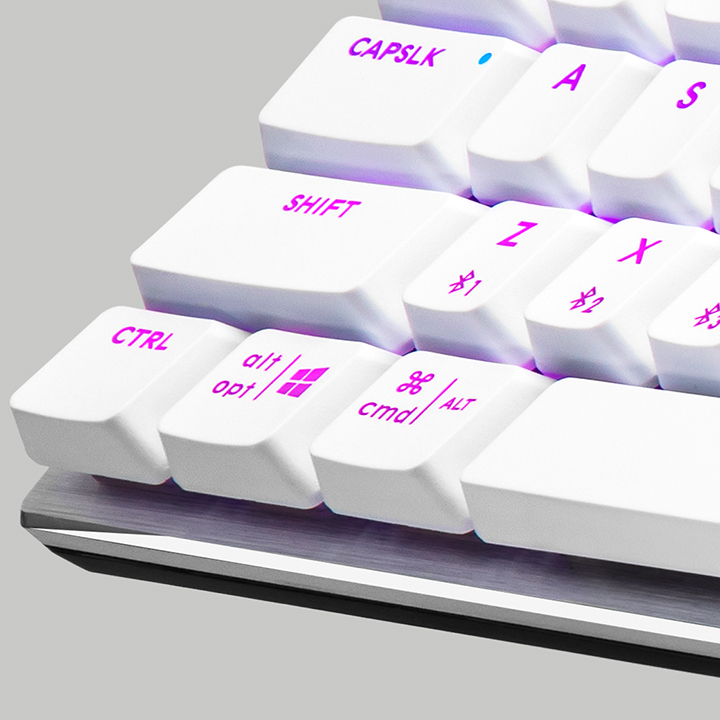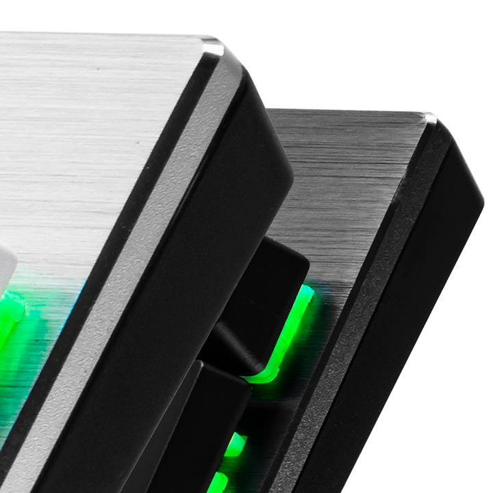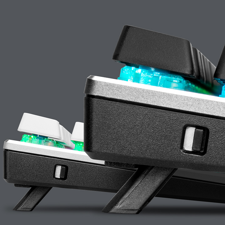 Whether your illuminated keycaps are white or black, the top surface comes with a brushed aluminum finish in either Silver White or Gunmetal Gray. Both versions look fantastic and should complement your desktop arrangement well. The underbelly comes in black regardless of version.