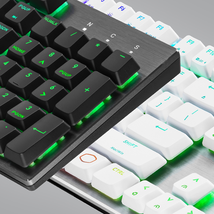 The SK653 is capable of working with devices utilizing the following operating systems: Microsoft Windows (8 and above), Mac OS X, iOS, and Android. This is a huge selling feature. Switching between a PC and Mac couldn’t be simpler. Holding the Cooler Master FN button tells you what OS the keyboard is working with, and combining this with the right shift key switches the OS back and forth.